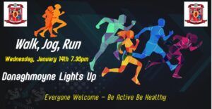 Come and Join us next Wednesday January 14th at 7.30pm. We are switching on the lights and stretching our legs as we make a healthy start to 2026. Walk, Jog or Run come along to the Donaghmoyne Walking Track next Wednesday and Be Active Be Healthy in 2026.